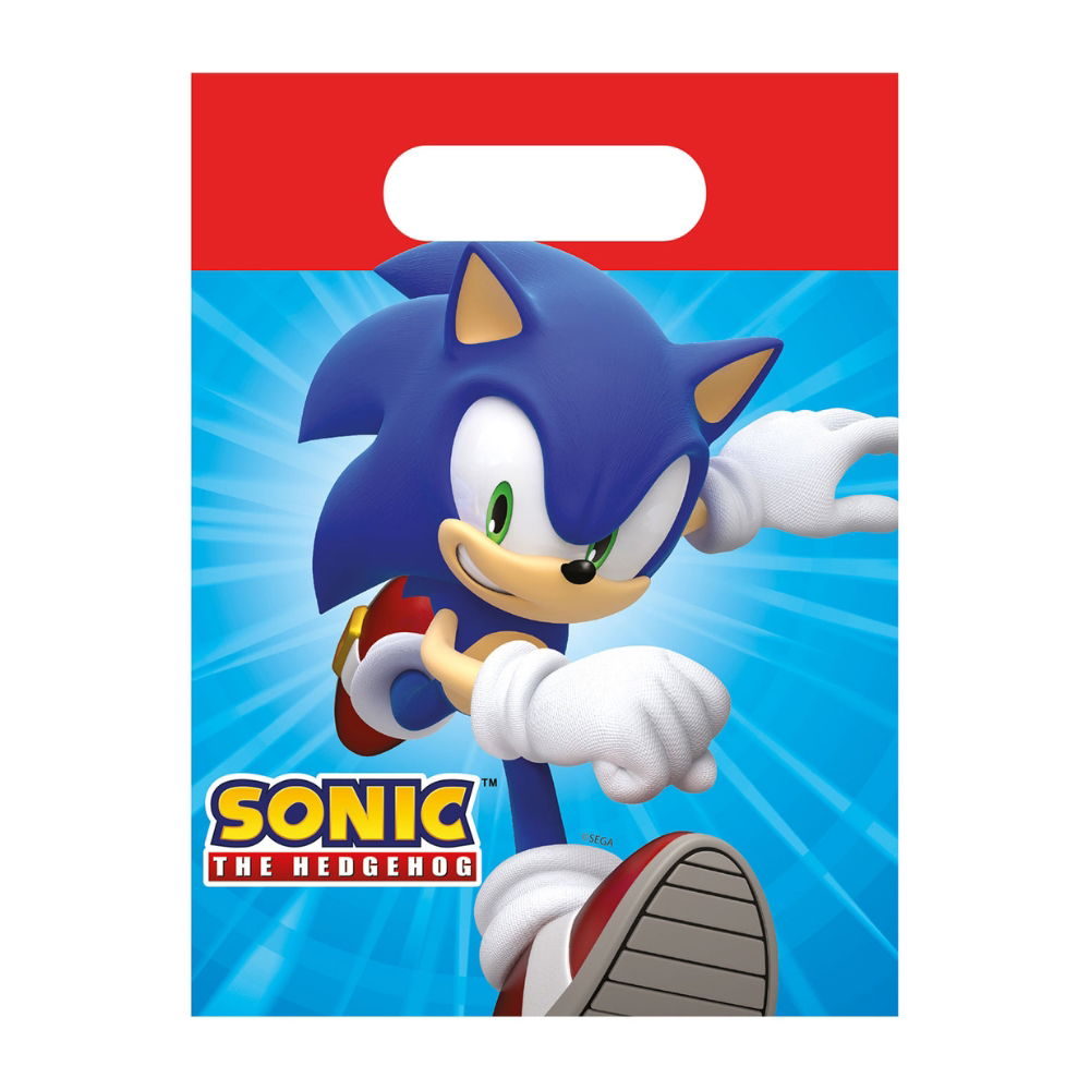 4 pack med kalaspåsar med Sonic motiv, alldeles utmärkta till barnkalaset för att stoppa godis i till gästerna eller varför inte en liten present. Påsarna har ett mått 16 x 22 cm.