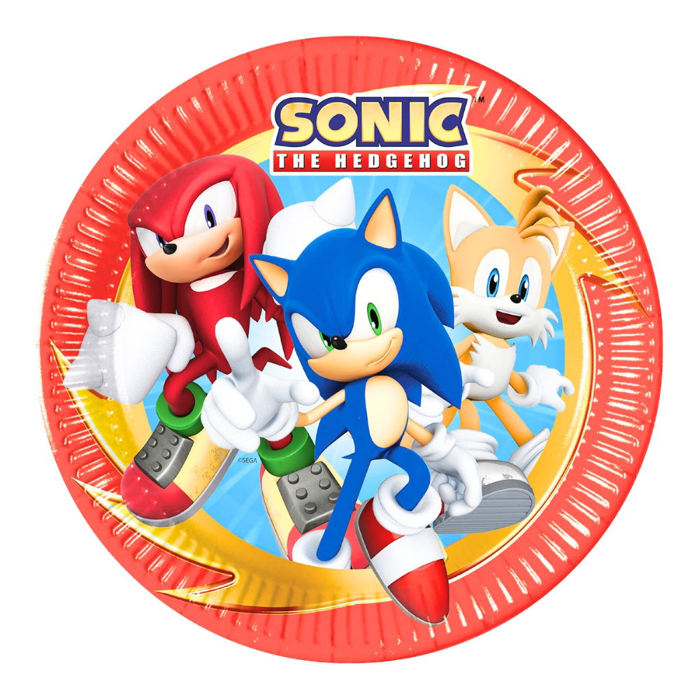 Duka upp för ett fartfyllt firande med dessa Sonic the Hedgehog papptallrikar. En förpackning innehåller 8st tallrikar med färgstarkt motiv av Sonic.