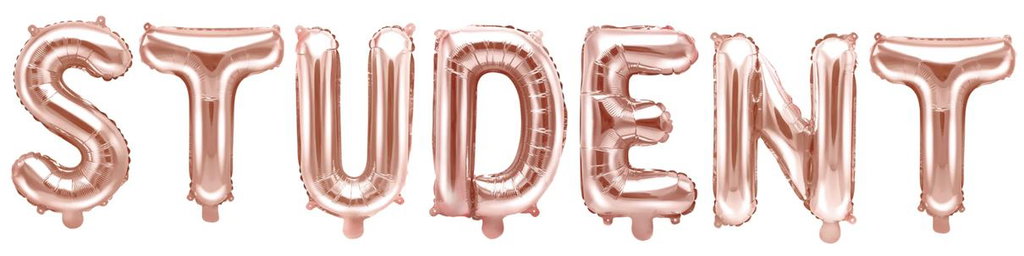 1st Student Folieballong roséguld som bildar ordet STUDENT